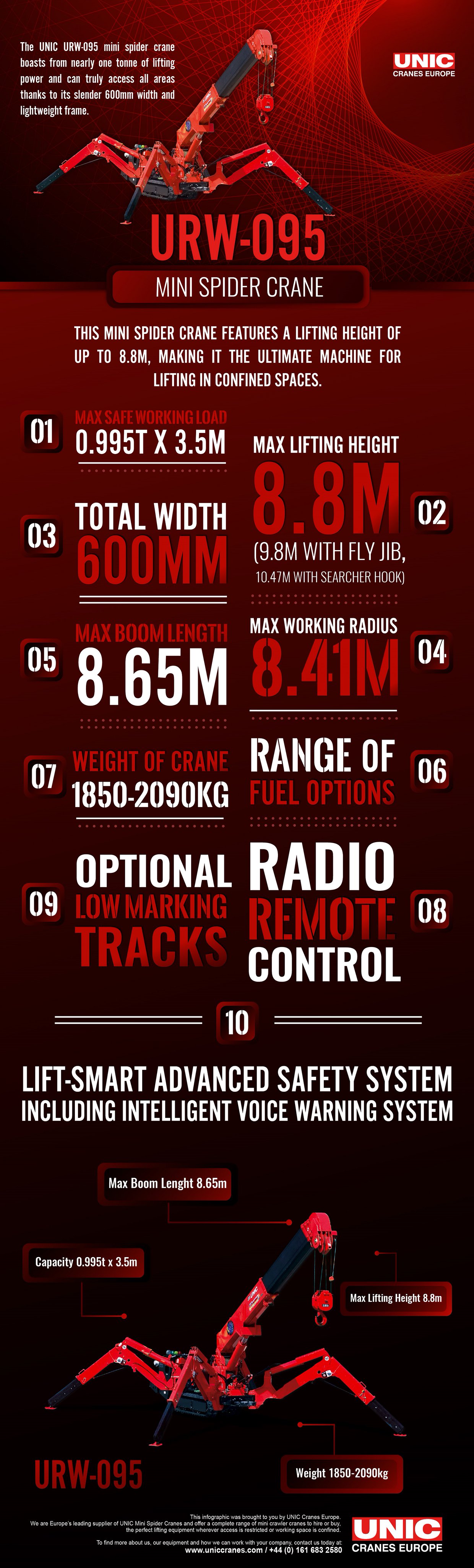 The UNIC URW-095 mini spider crane boasts from nearly one tonne of lifting power and can. Cranes Hoists Material Handlers. Welcome to UNIC Cranes Europe home of the worlds most compact mini cranes.